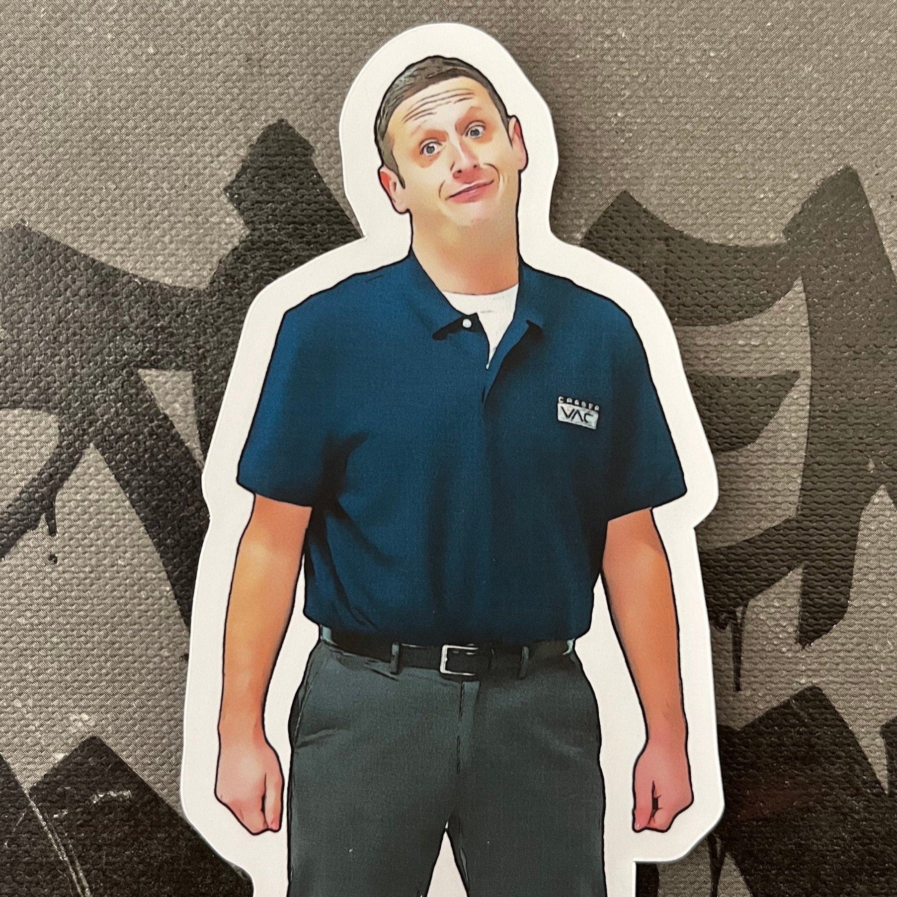Crafted with meticulous attention to detail, this high-quality 3" vinyl matte sticker showcases Tim Robinson in his pitchman persona, capturing the essence of the hilariously awkward moment. With a mix of charm and discomfort on his face, he brings the sketch to life and invites laughter and amusement wherever you choose to display the sticker.