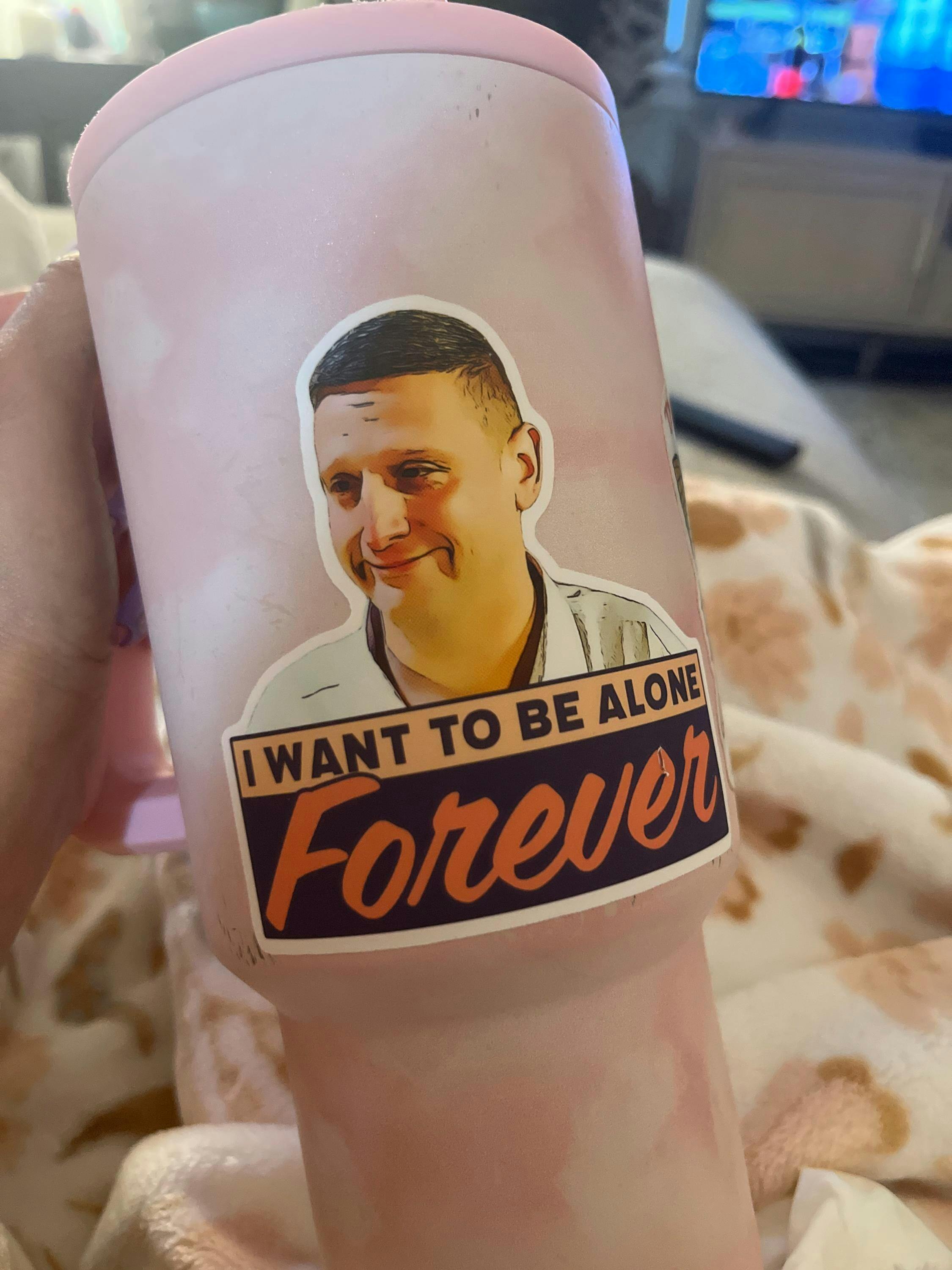 Crafted with meticulous attention to detail, this high-quality 3" vinyl matte sticker features Tim Robinson's crying sad face alongside the quote "I Want to Be Alone Forever." It's a playful nod to the character's unique approach to dating and his hilariously unconventional goals.